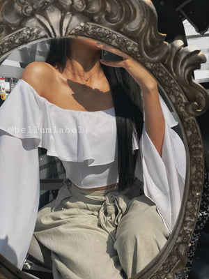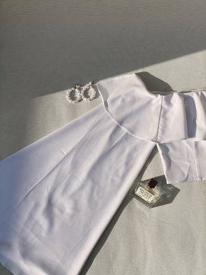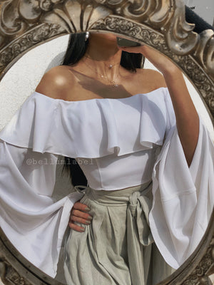 Our 'gloriousness white top' will give you heavenly feels with its angelic sleeves and a back corset that is easily adjustable.